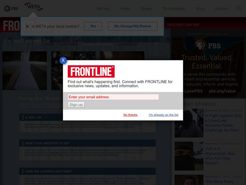 This collection of articles examines the problems on Wall Street following a number of scandals, lessons learned from them, potential solutions to restore investor confidence. The series was published May 8, 2003.