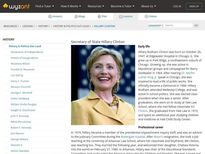 Biographical material briefly outlines the life and career of Hillary Clinton including footage of Mrs. Clinton delivering a speech on women's rights.