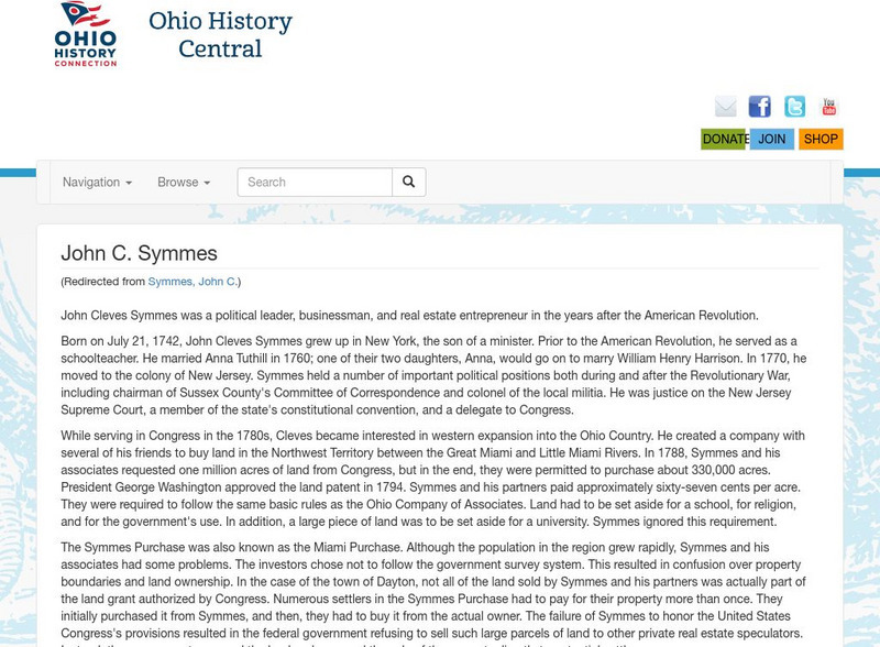 Learn the exciting story of how John Cleves Symmes (1742-1814) traveled to the Ohio Country and eventually set up the first settlement about a mile below the Little Miami River.