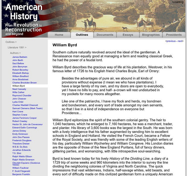 American History: Outlines: William Byrd (1674 1744)