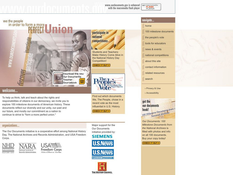 Our Documents is home to one hundred milestone documents that influenced that course of American history and American democracy. Includes full-page scans of each document, transcriptions, background information on their significance, and...