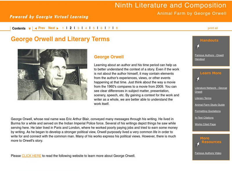 Ga Virtual Learning: Animal Farm: George Orwell and Literary Terms