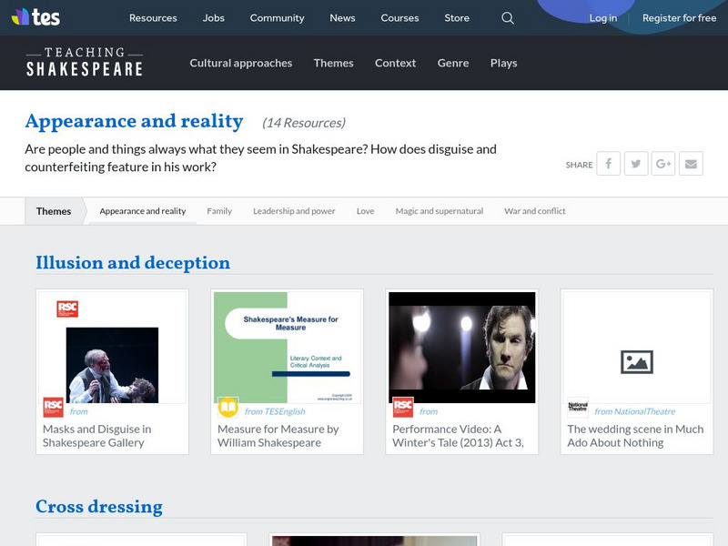 Tes: Teaching Shakespeare: Themes: Appearance and Reality
