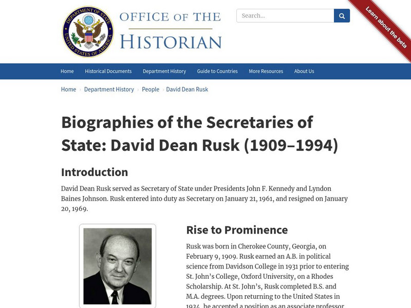 Biographies of the Secretaries of State: David Dean Rusk (1909 1994)