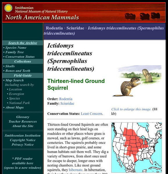 National Museum of Natural History: American Mammals: Thirteen Lined Ground Squirrel
