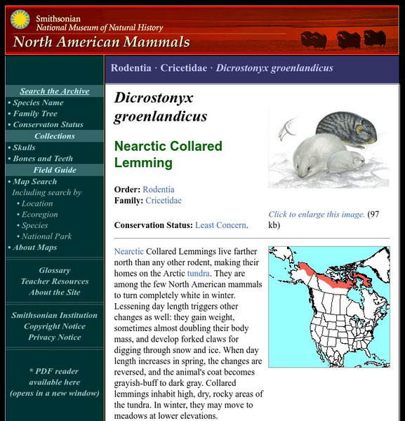 National Museum of Natural History: American Mammals: Northern Collared Lemming