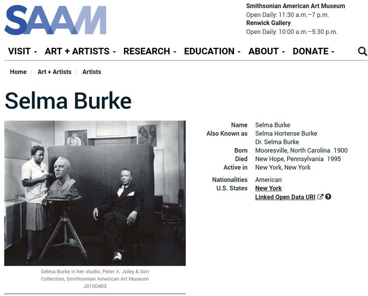 Selma Burke is profiled at this site in a format that begins with a brief biographical sketch of her life. Her works are then listed by appearance in the museum's database. Each work is presented in thumbnail format with brief...