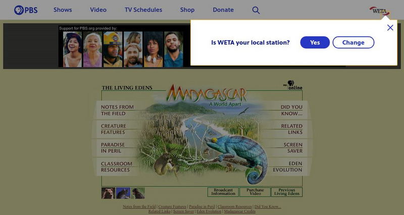 Informative site that includes information about the land of Madagascar as well as the animals that inhabit it. Accompanies a PBS video, but you do not necessarily need the video to check out the site. Includes lesson plans as well as a...