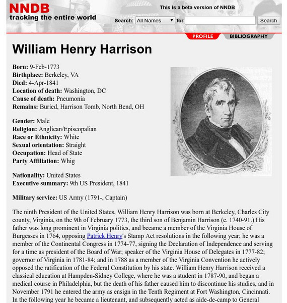 The ninth President of the United States was a General during the War of 1812. He lead forces at the Battle of Tippecanoe, and in 1813 reversed the losses of General William Hull. As Governor of Indiana Territory he acquired a large...