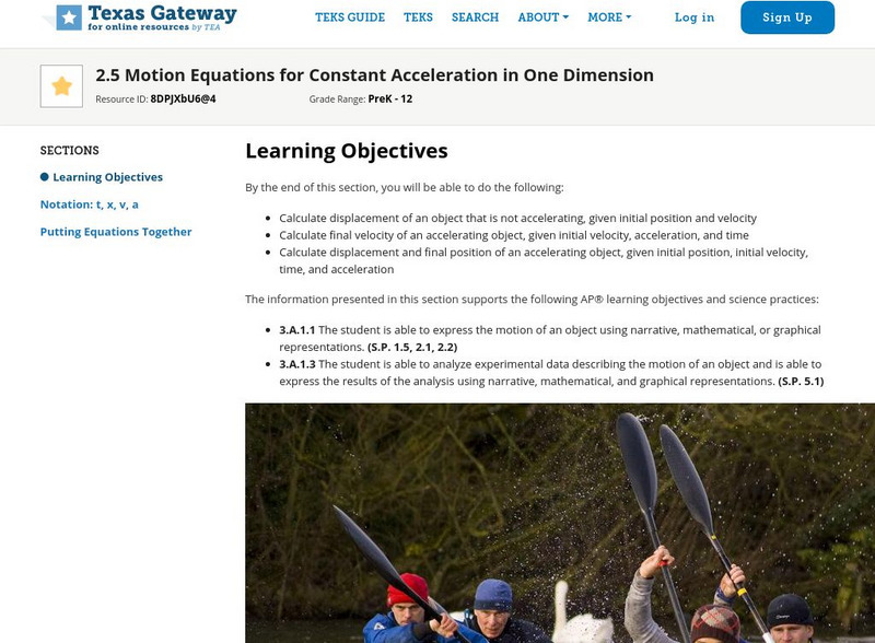 Texas Gateway: Motion Equations for Constant Acceleration in One Dimension