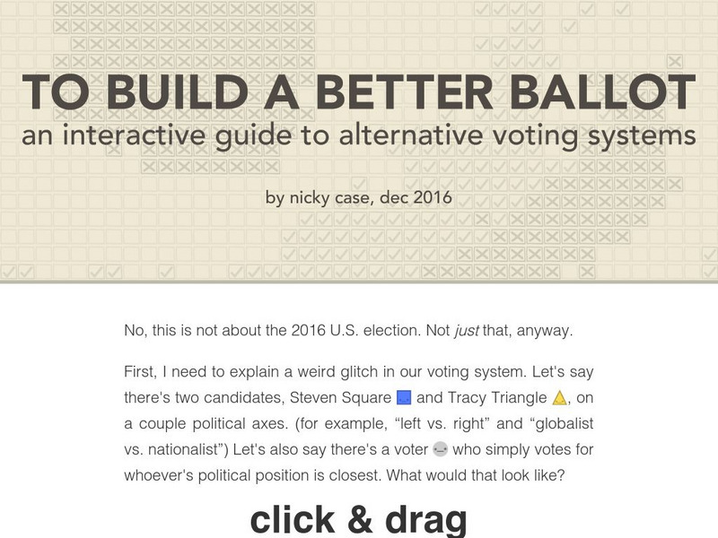 Distrust in democracy has been growing in America over the past few generations. There are many ways to help regain trust and Nicky Case analyzes one of those ways - choosing an alternative voting system. By viewing computer simulations...