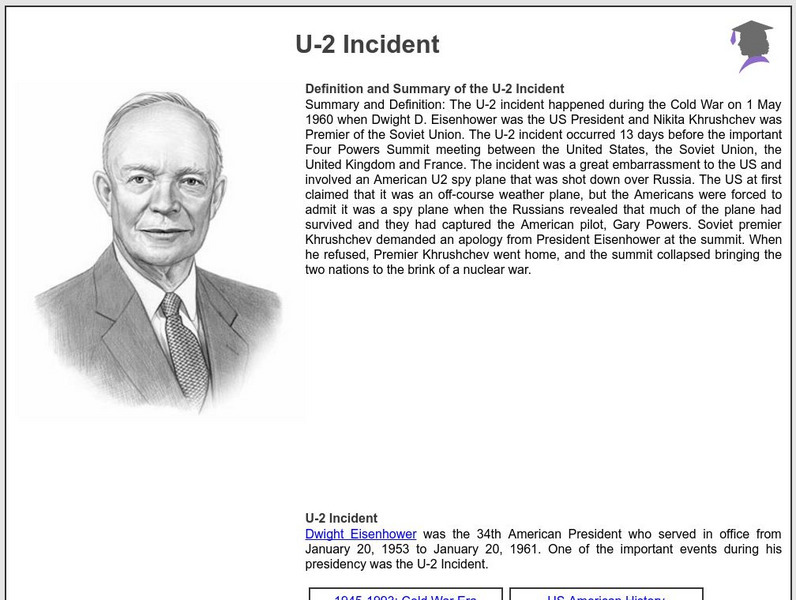Detailed facts and an overview of the 1960 U-2 Incident when an American U2 spy plane piloted by Gary Powers was shot down over Russia.