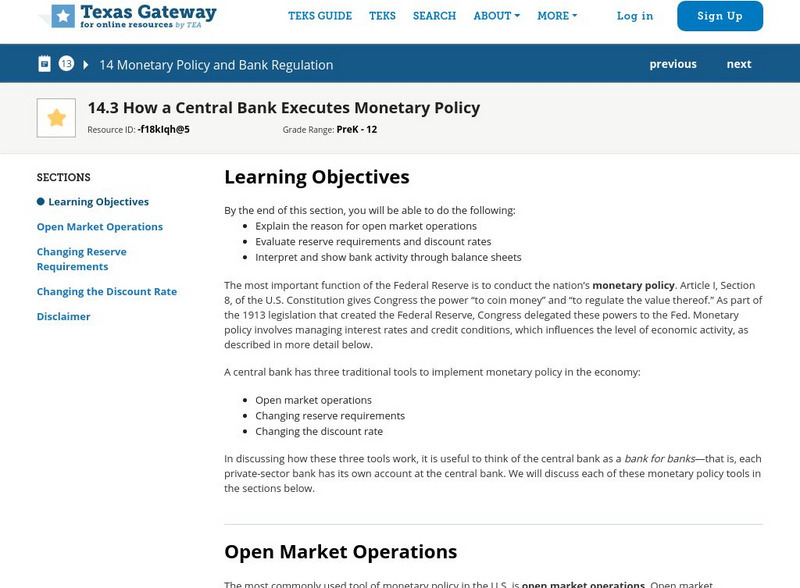 Texas Gateway: Ch. 14: How a Central Bank Executes Monetary Policy