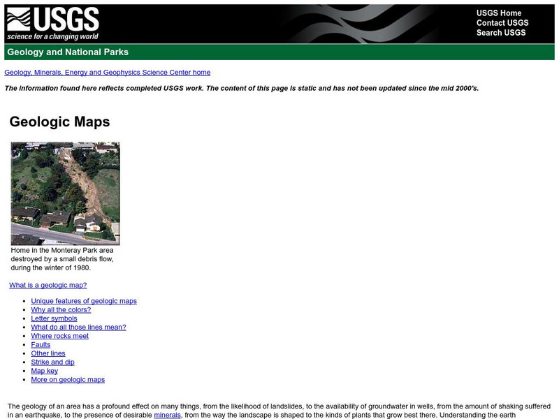 This site has a good description of what this particular type of map represents. It also explains the colors and letter symbols, faults, and strike and dips.