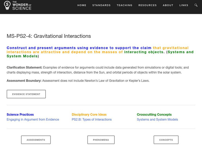 Help plan lessons that will facilitate learners learning about interaction of objects due to the gravitational interactions that are attractive and depend on the masses. Included on site are work samples, phenomena, assessment templates,...