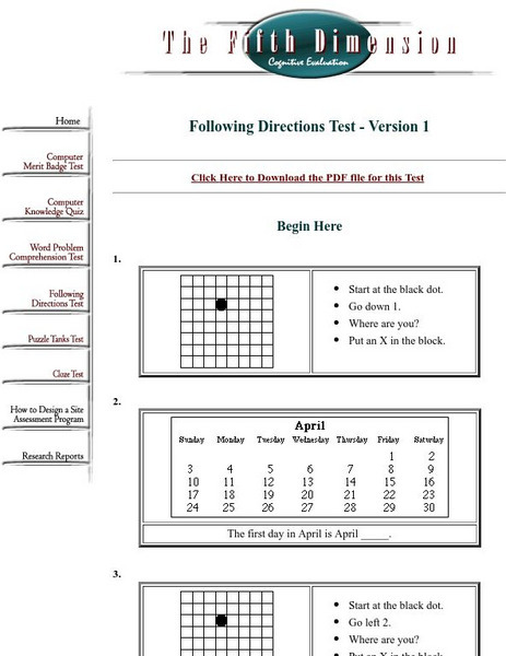 Two versions of a 12-question test to see if students can follow directions for simple procedures. Directions for administering the tests and answer keys are provided.