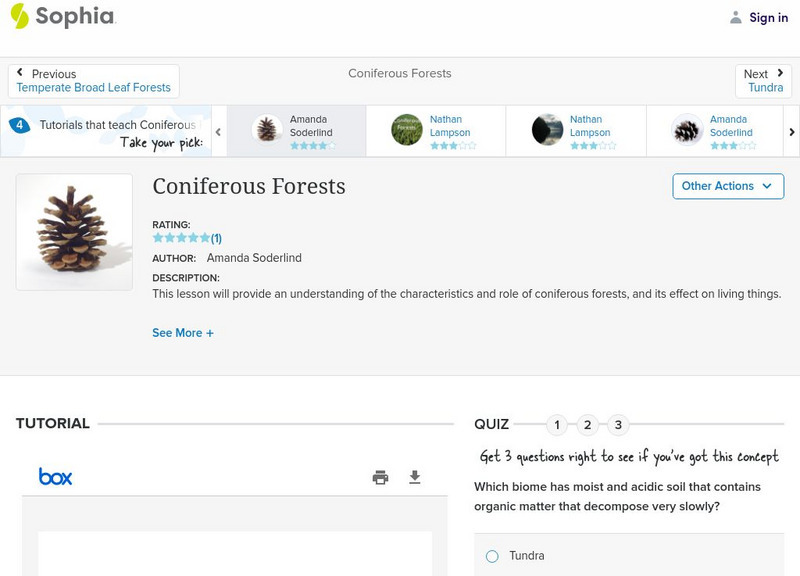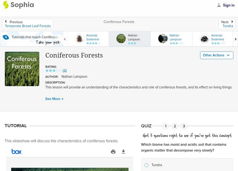 This lesson will provide an understanding of the characteristics and role of coniferous forests, and its effect on living things. It is 3 of 5 in the series titled "Coniferous Forests."