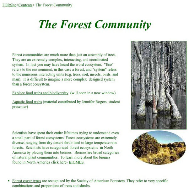 Learn all about the forest biome including where located in the world, different kinds, climate, flora and fauna, and soil. Good research site for middle years students.