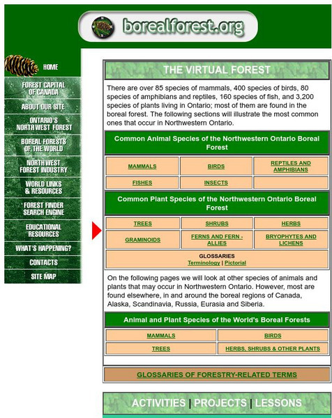 This page offers a detailed collection of photos and info on plant and animal species of the boreal forest. Pictorial glossary.