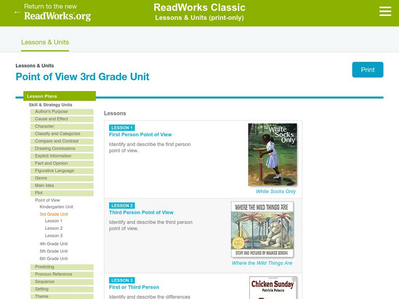 [Free Registration/Login Required] A series of three lesson plans designed to teach students first and third person point of view and the differences between them. Lessons are based on the books White Socks Only by Evelyn Coleman, Where...