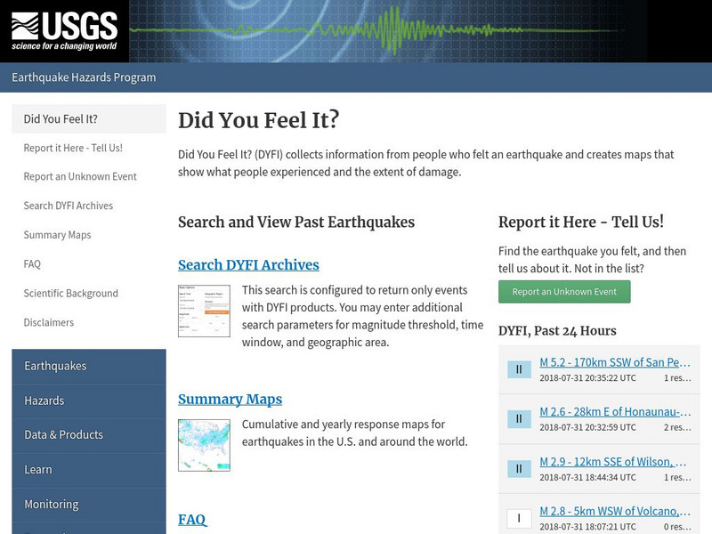 The U.S. Geological Survey sponsors this site about the history of earthquakes in the United States as well as information about how earthquakes are detected and measured.