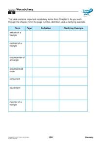 In this geometry worksheet, 10th graders review the vocabulary associated with the special segments of a triangle and the associated points of concurrency and solve problems in which they find the indicated missing angle or...