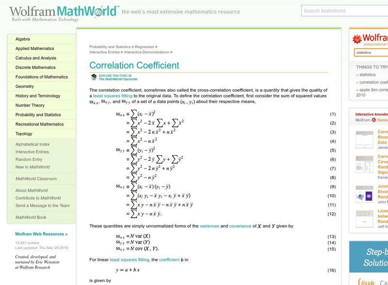 Wolfram Math World: Correlation Coefficient