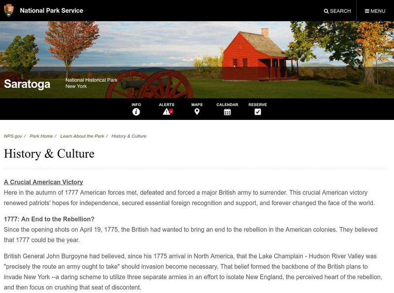 This site from the National Park Service gives information on the Campaign of 1777 and Battles of Saratoga. Hyperlinks to pictures and brief explanations of the pictures. A great site.
