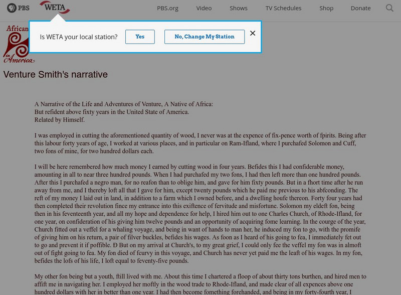 Pbs Africans in America: Venture Smith
