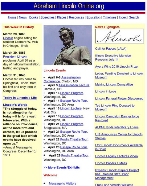 This site is a wonderful resource for everything you need on Abraham Lincoln! The site contains the text to many of his writings and speeches, many pictures, profiles and biographies, information on places associated with Lincoln, plus...