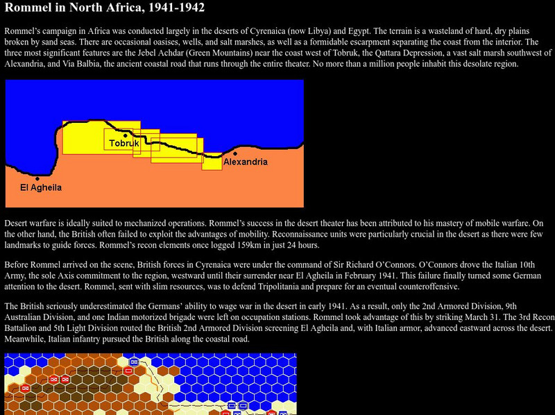 This site from the Harvey Mudd College describes the advances of Rommel and the German troops in North Africa and discusses the fighting that took place there in '41-'42.