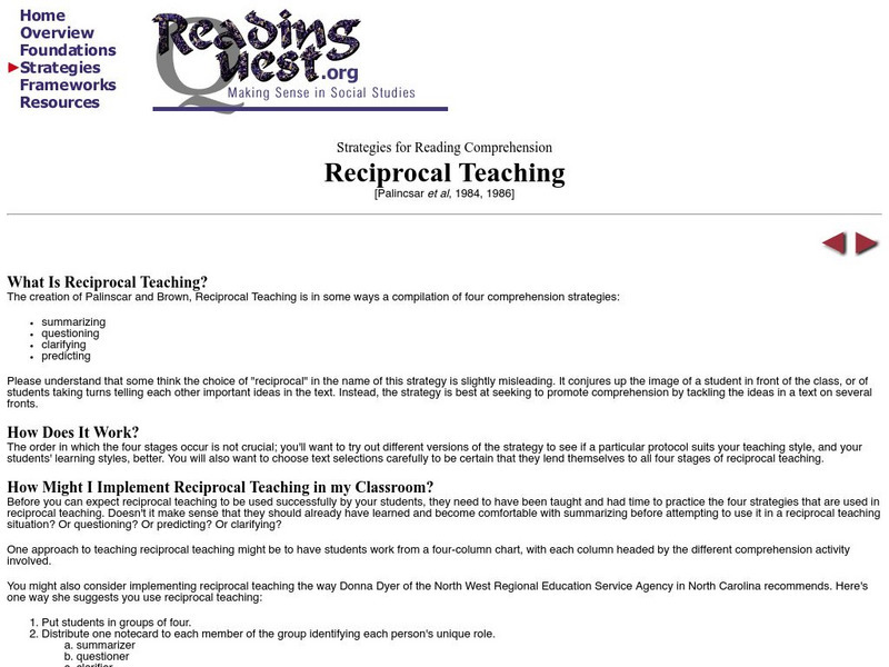 Strategies for Reading Comprehension:reciprocal Teaching