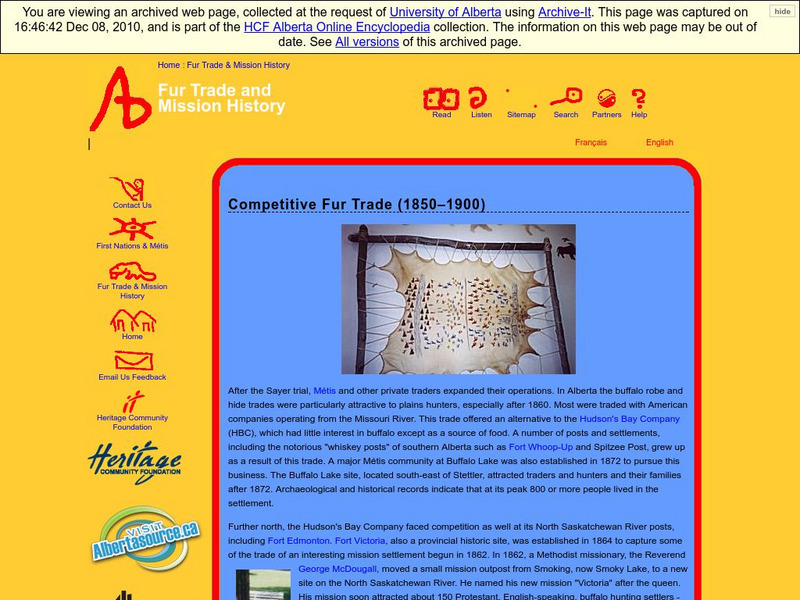 Alberta Online Encyclopedia: Competitive Fur Trade (1850 1900)