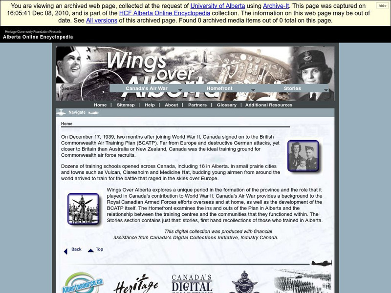 Wings Over Alberta explores a period during the formation of Alberta, including the role that it played in World War II. The focus of this site, 'Canada's Air War', provides a background to the Royal Canadian Armed Forces efforts...