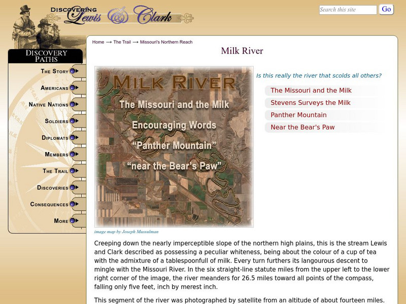 Discover facts about the valley of the river Lewis and Clark named Milk and read about their observations.