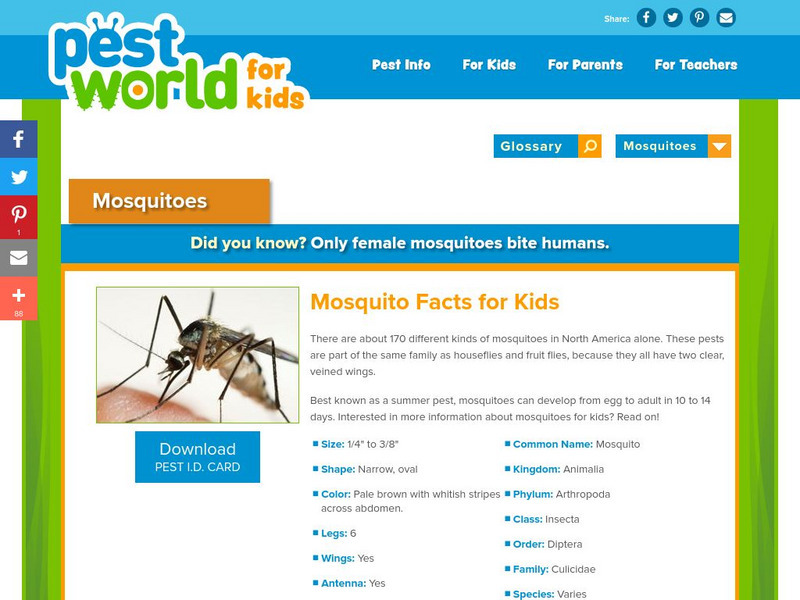 Detailed resource guide for learning facts about mosquitos focusing on diet, habitat, impact, and prevention.
