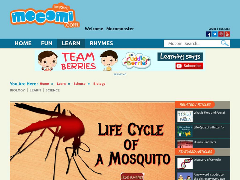 Gives a basic explanation of the life cycle of a mosquito along with some facts about this insect.