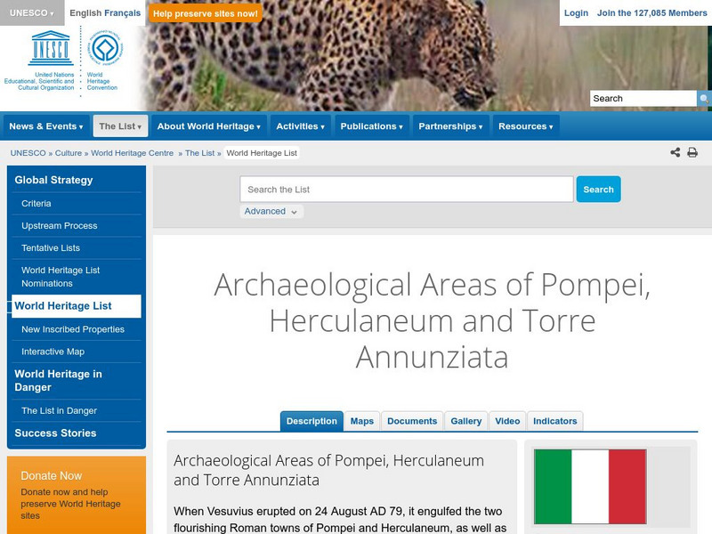 This World Heritage website looks at the Roman towns of Pompeii and Herculaneum, and wall paintings at Torre Annunziata, that were buried when Mount Vesuvius erupted in 79 AD. Found here are a description, news, maps, documentation,...