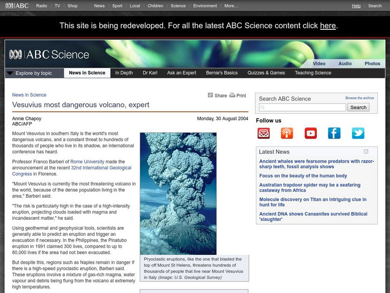 Australian Broadcasting Corporation: News in Science: Vesuvius (World's Most Dangerous Volcano)