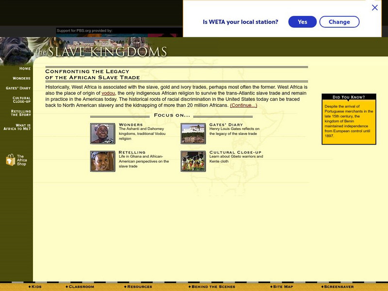 PBS offers an excellent site with the description of some of the areas that supplied slaves.