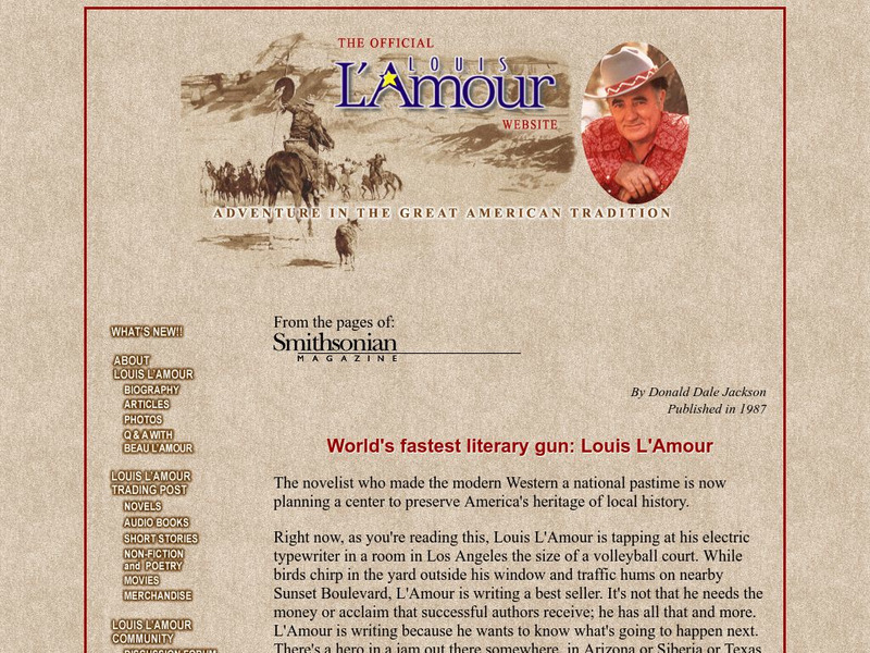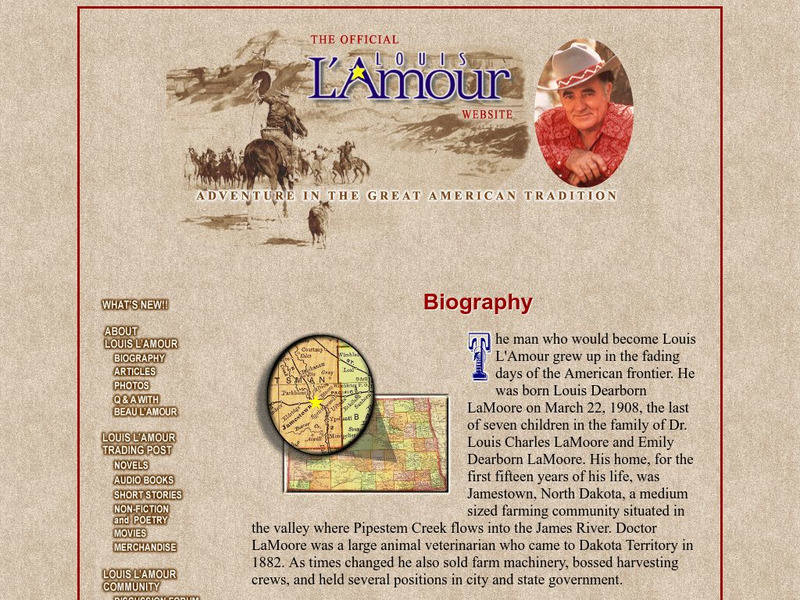 Extensive biographical information on the life and accomplishments of Louis L'Amour. Includes photographs and links to his works.