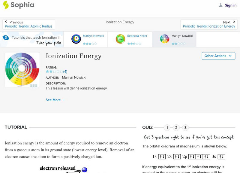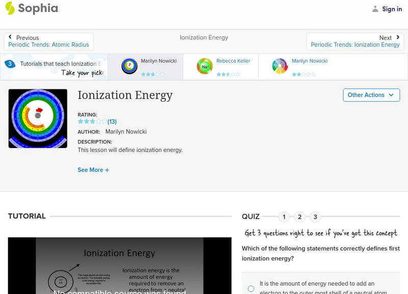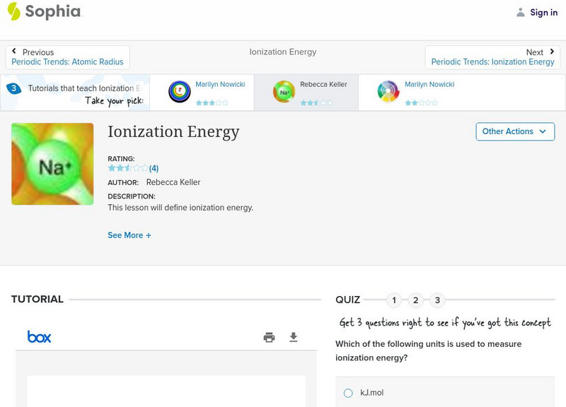 Sophia: Ionization Energy: Lesson 1