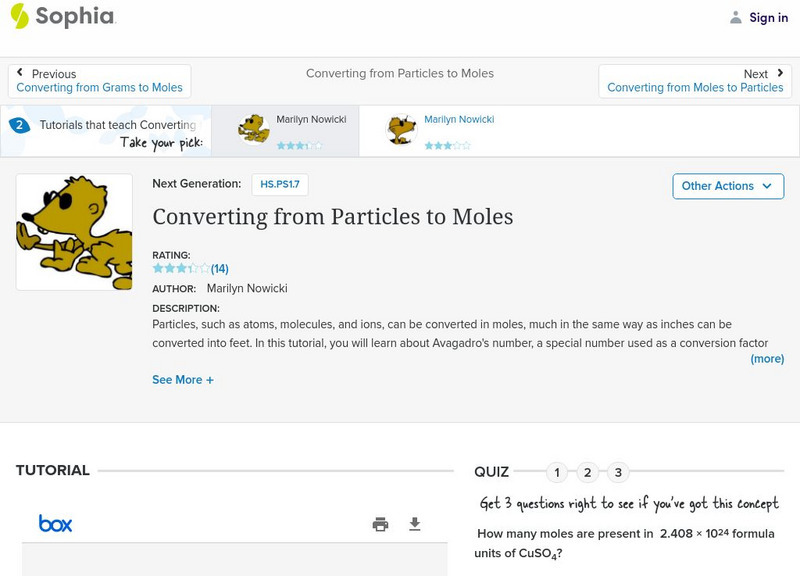 Sophia: Converting From Particles to Moles
