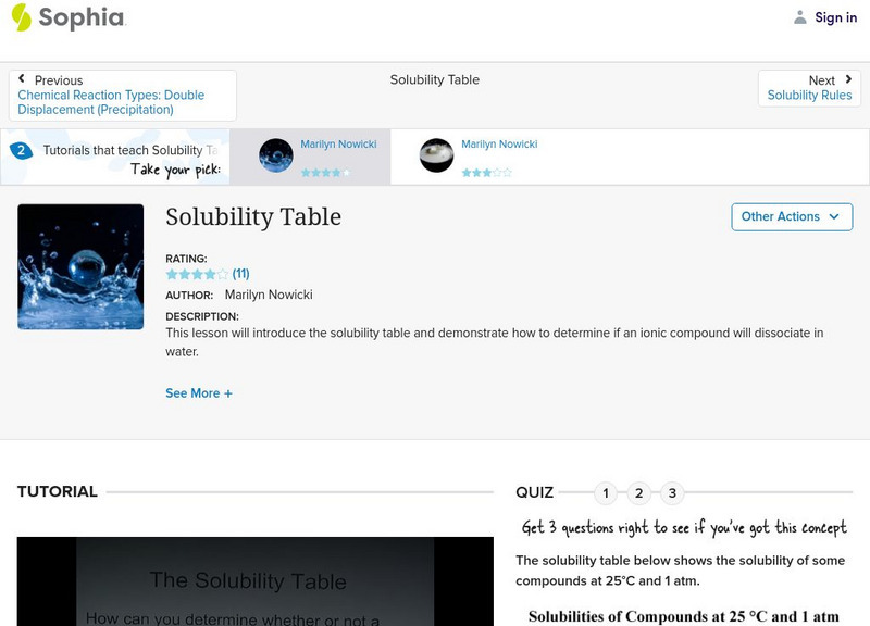 A guided tutorial which introduces a solubility table, and demonstrates how to determine if an ionic compound will dissociate in water. [5:48]