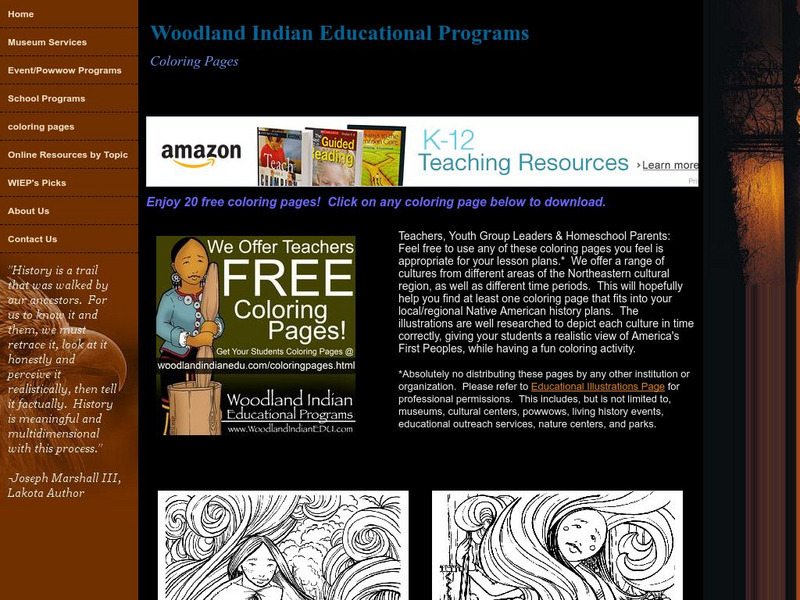 A collection of coloring pages depicting various Woodland native peoples in their daily lives growing and gathering food, building shelter, etc. Good illustrations of their clothing as well.