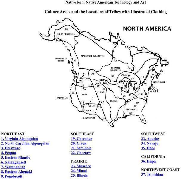Native Tech: Culture Areas and the Locations of Tribes With Illustrated Clothing