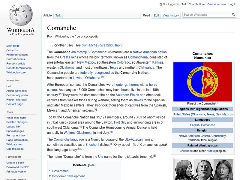 Wikipedia offers detailed information on the Native American group, the Comanche.