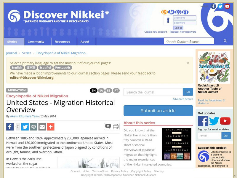 A brief overview of the history of Japanese migration to the United States, from 1885 to the present, that also describes the reactions of Americans to Japanese immigrants. Details are presented on the issue of racism and how it led to...