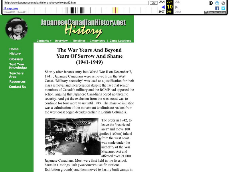 Japanese Canadian History: The War Years and Beyond: Years of Sorrow and Shame