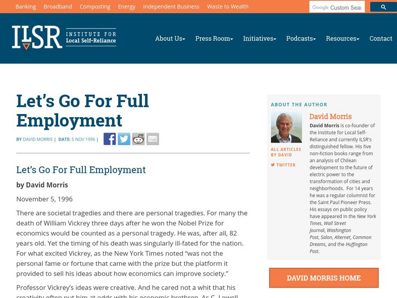 Institute for Local Self Reliance: Let's Go for Full Employment